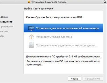 Дождитесь окончания процесса установки и запустите казино LuxorSlots. Для этого дважды кликните на ярлык в папке "Приложения" или один раз на иконку в трее.